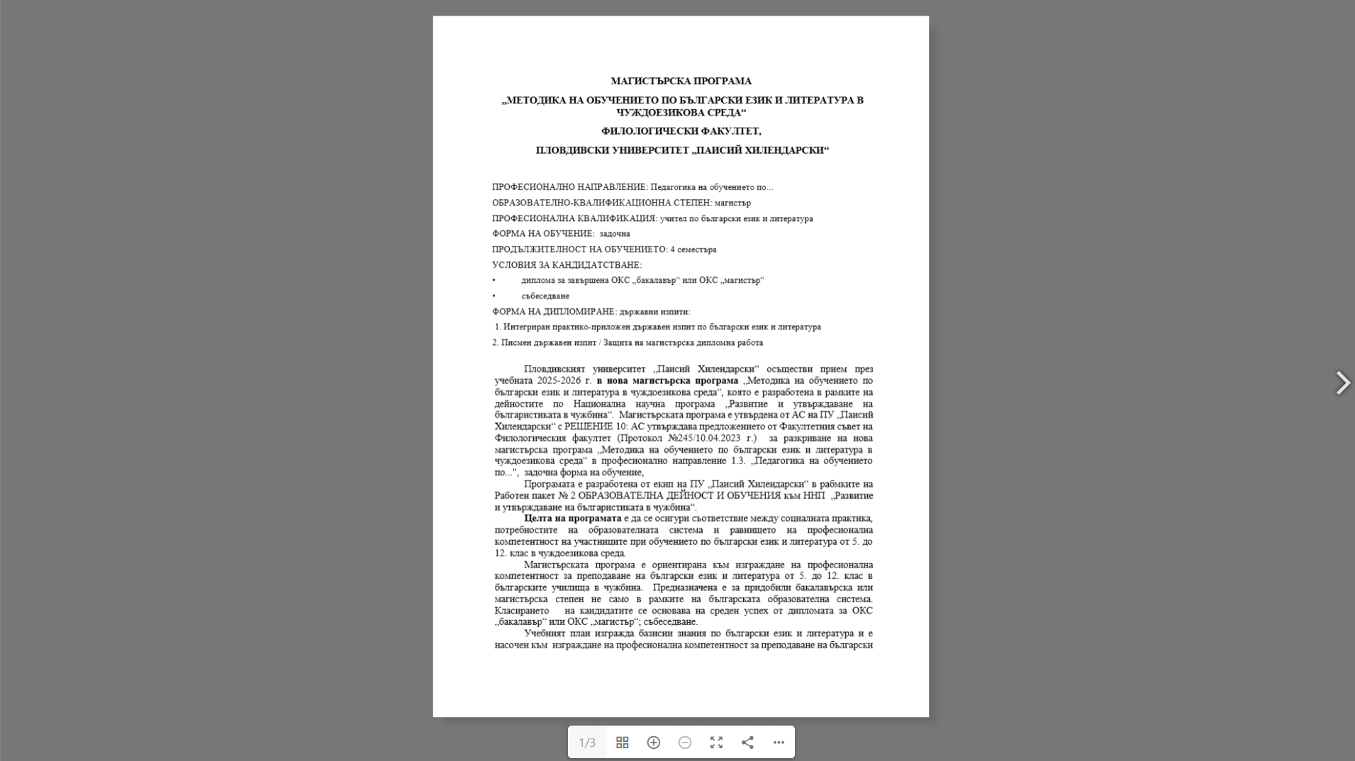 Методика на обучението по български език и литература в чуждоезикова среда“ към Пловдивски университет „Паисий Хилендарски Великотърновски университет “Св. св. Кирил и Методий