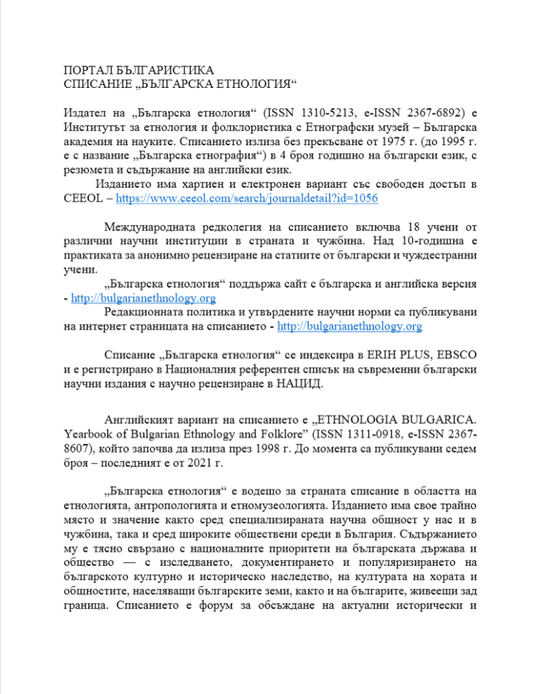 Анотация на сп. “Българска етнология